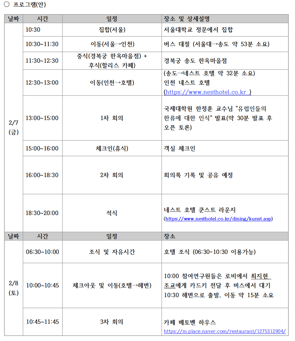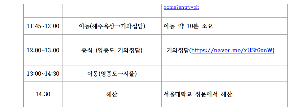 - 서울대 정문에서 집합 후 버스로 단체이동 예정