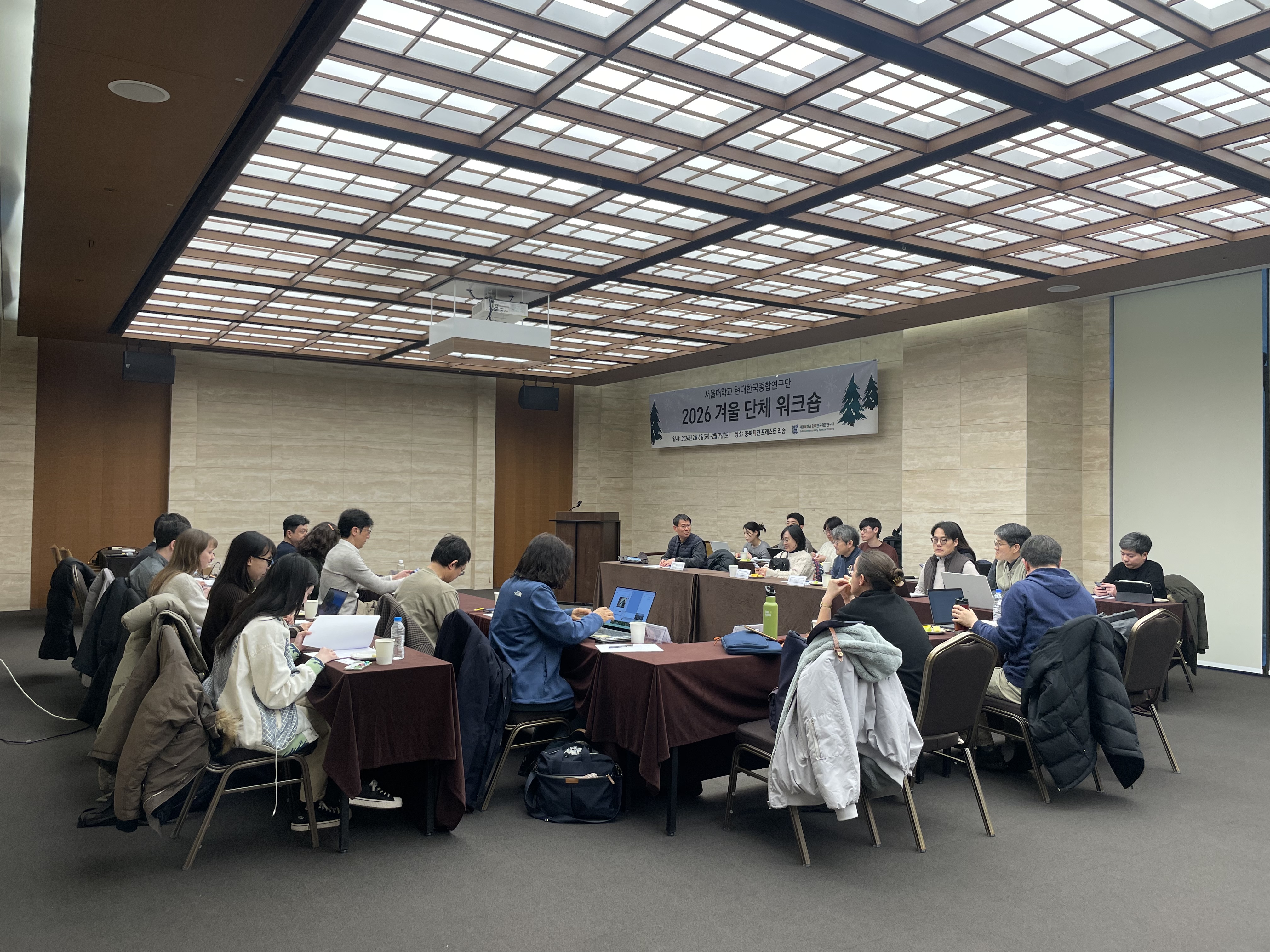 2026년 2월 6일부터 7일까지 이틀간, 현대한국종합연구단은 충청북도 제천에서 단체 워크숍을 개최하였다. 본 워크숍에는 권형기 연구단장, 각 연구팀의 팀장, 조교들을 포함한 다수의 참여연구원들이 참석하여, 현대한국종합연구단의 2차년도 연구성과를 공유하고 3차년도 연구활동계획의 방향과 세부 내용을 논의하는 시간을 가졌다.