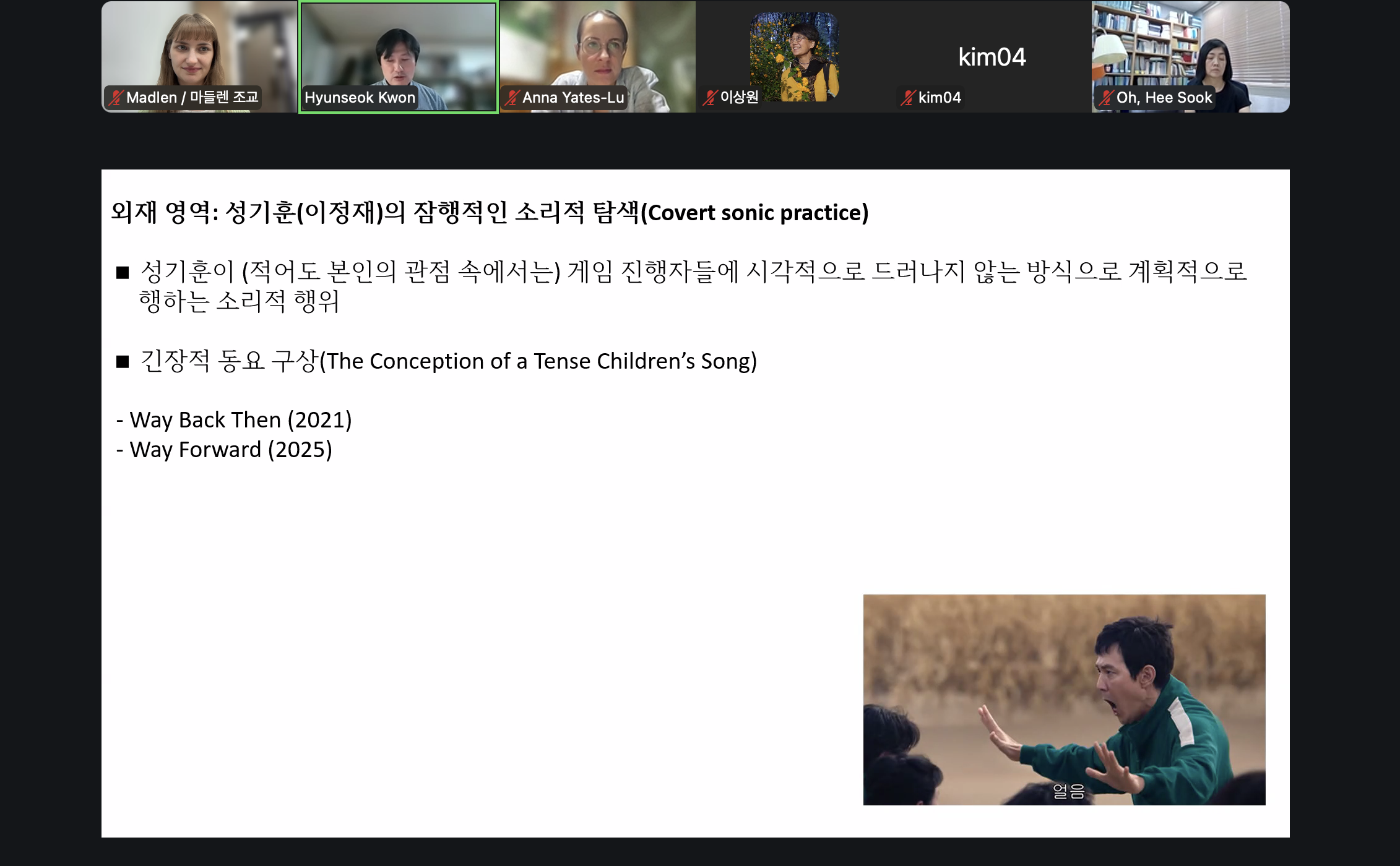 Next, Professor Kwon Hyunseok from Hanyang University gave a talk titled "Glimpsing Korean Society through Popular Music Research – The Case of the Drama 'Squid Game"'. His lecture focused on the analysis of class-based sonic hierarchies in popular culture through the study of internal and external music of Squid Game to reveal the sonic power structures that underlie the capitalist Korean society. He explained how sound serves as a vehicle for social desire and class representation.