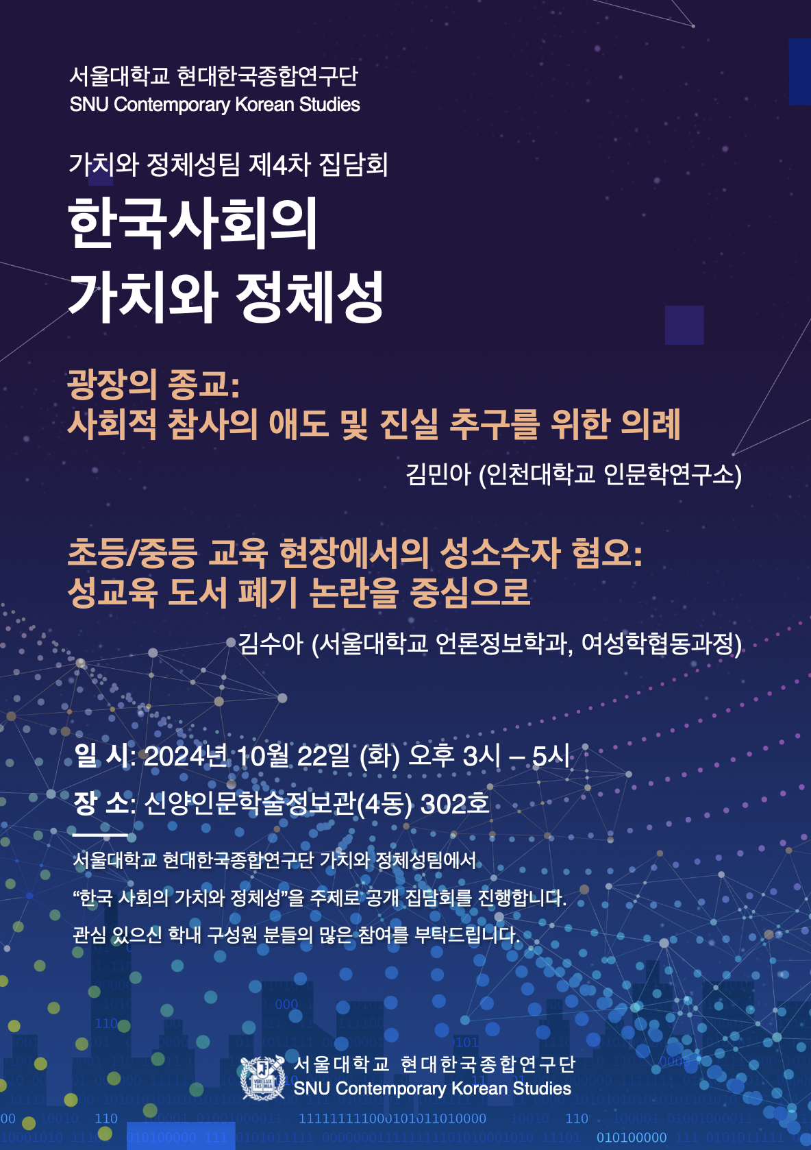 - Venue: Room 302, Shinyang Hall II (Bldg. 4), Seoul National University