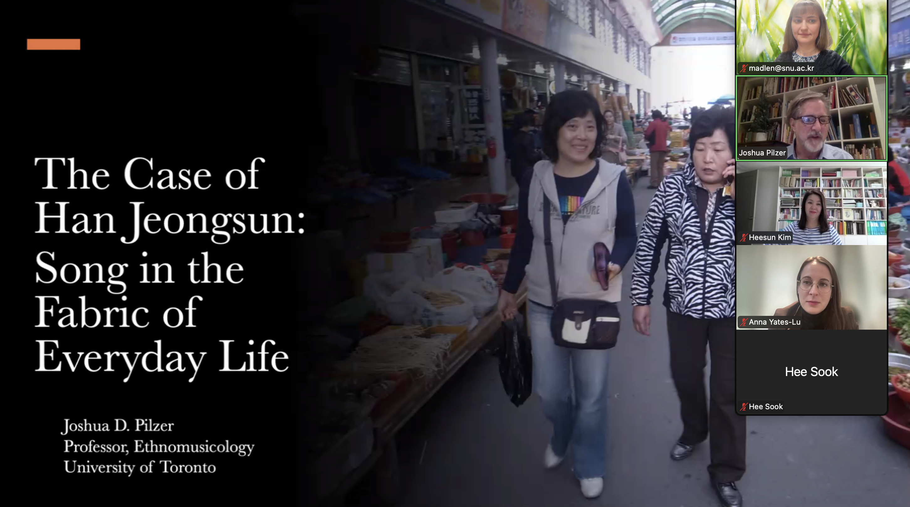 11월 21일 열린 현대한국음악연구 콜로퀴움에서는 캐나다 토론토대학교의 조슈아 필저(Joshua Pilzer) 교수가 「The Case of Han Jeongsun: Song in the Fabric of Everyday Life」라는 주제로 발표를 진행하였다.