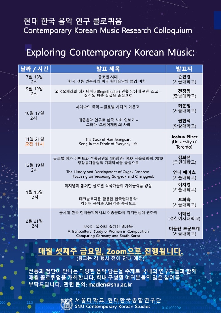 최근 열린 현대한국종합연구단 음악팀 콜로퀴움에서는 가야금 창작과 테크놀로지를 활용한 한국현대음악을 주제로 두 편의 발표가 진행되었다.