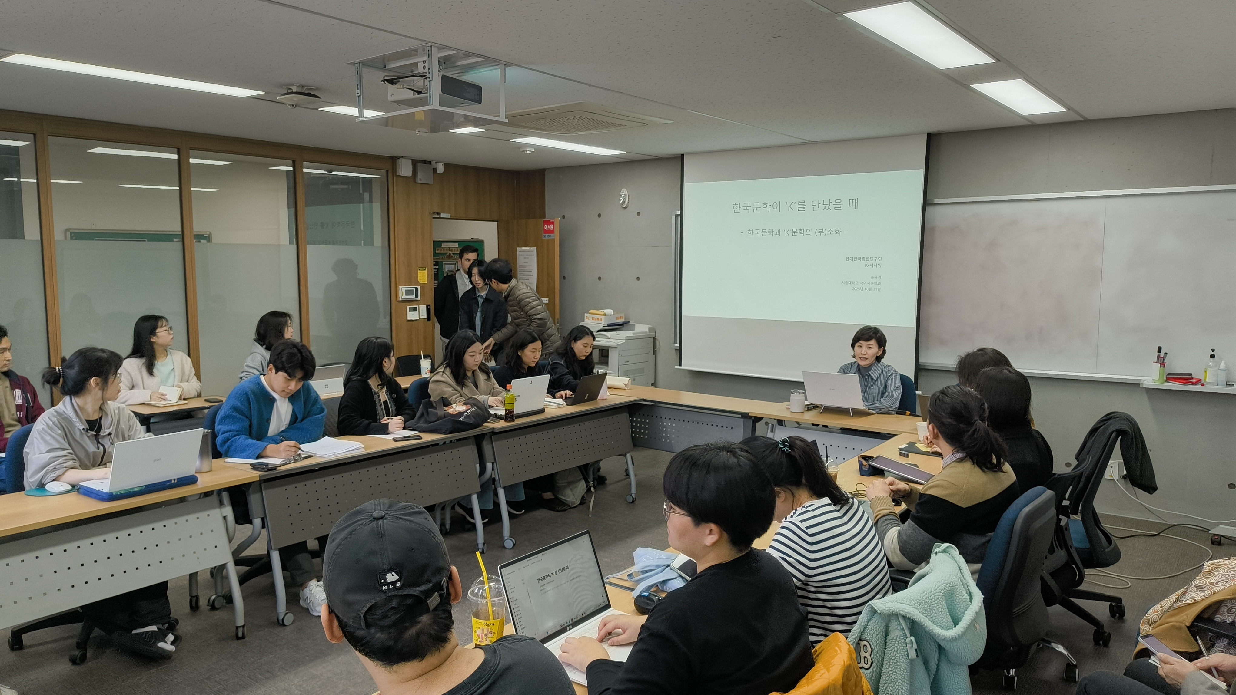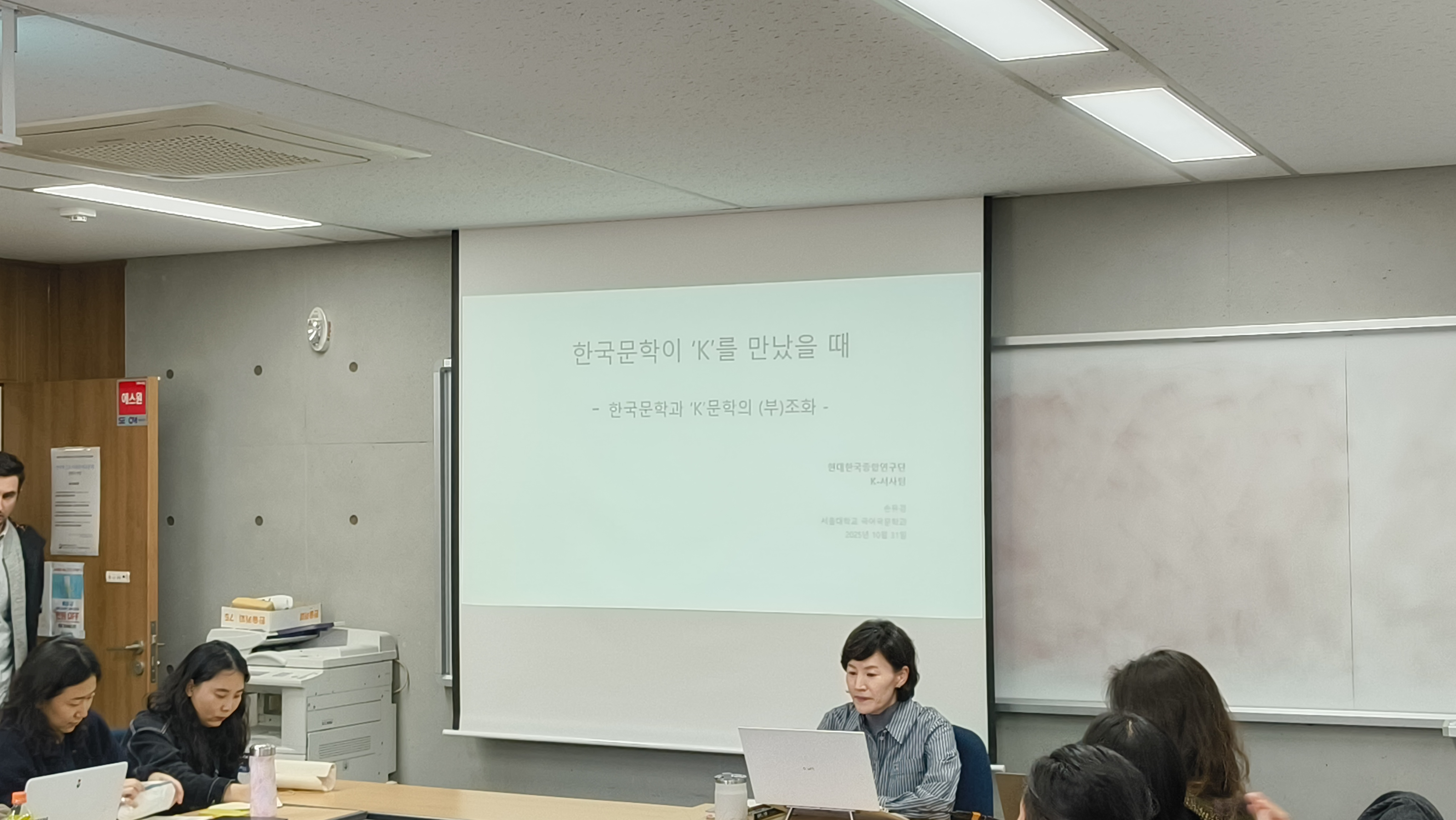 10월 31일의 발표자는 서울대학교 국문학과 교수 손유경 선생님입니다. 「한국문학이 ‘K’를 만났을 때: 한국문학과 ‘K’문학 사이의 (부)조화에 관하여」라는 제목으로, 출판 시장과 학계에서 각각 과잉·과소대표되는 ‘K-문학’과 ‘한국문학’의 간극을 짚으며, 번역문학으로서의 K-문학이 한국학적 관점에서 어떻게 재구성될 수 있는지 모색합니다.